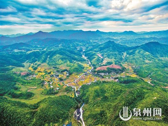 泉州森林资源丰富,在11015平方公里的土地总面积中,森林覆盖率达58.7%。图为从空中拍摄的德化县国宝乡。(陈起拓 摄)