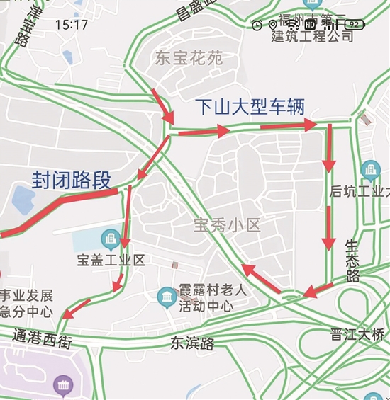 届时,管制路段禁止一切车辆及人员进出,非机动车和行人请改道宝盖路通行,宝盖路两侧严禁机动车乱停放。小型客货车辆可改道宝盖路通行,或经宝秀5号路右转后经东海隧道通行。此外,涉及宝山社区山上和部分项目建设必须通行的下山大型车辆经宝秀5号路右转后借用东海隧道临时通行(原则上不允许大型渣土运输车辆通行),临时通行时间为:9:00-10:30,15:30-17:00,车辆通行东海隧道时靠左侧车道行驶。