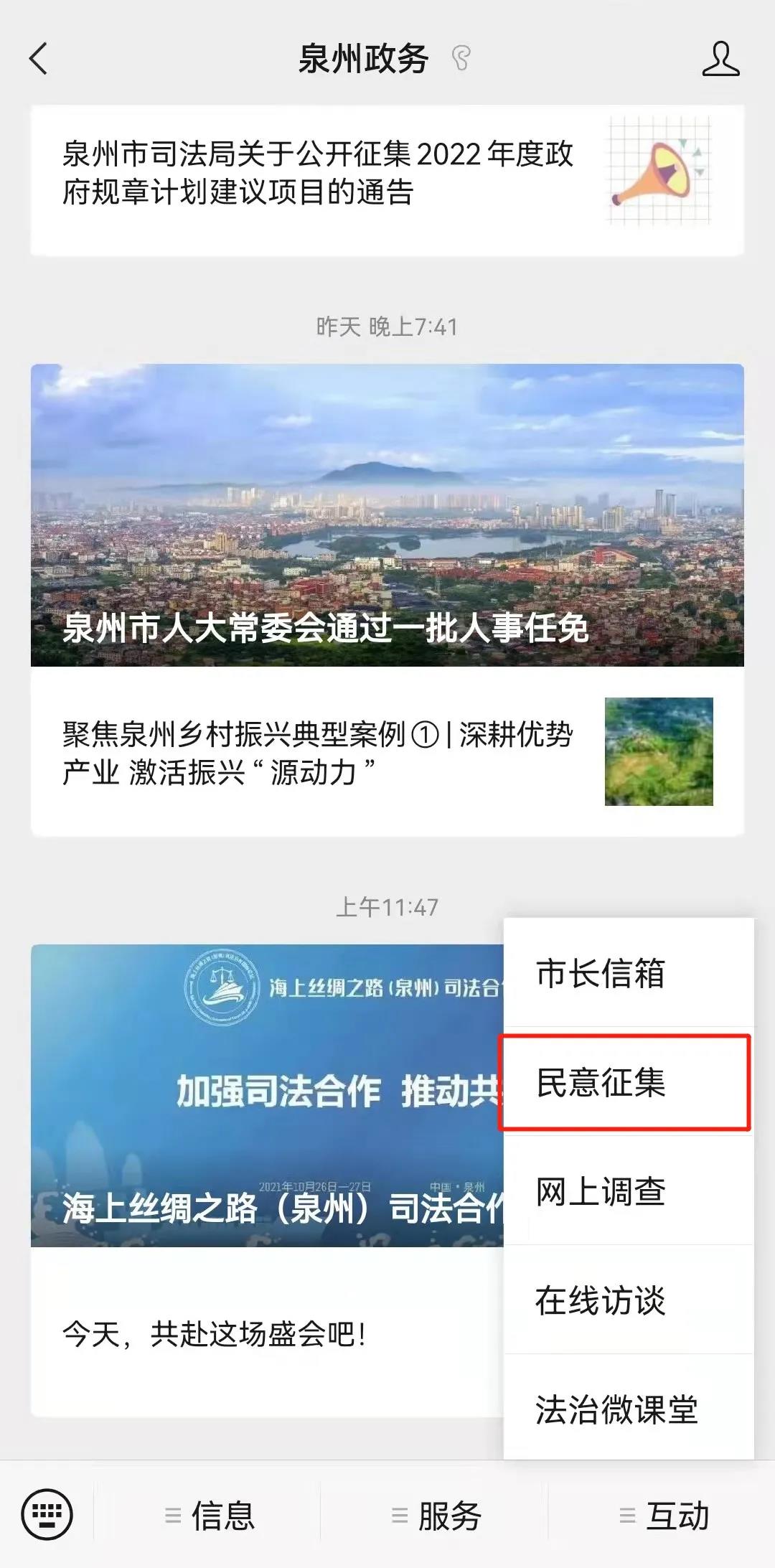 2.登录泉州市人民政府网站(http://www.quanzhou.gov.cn),在“互动交流”版块相关调查征集链接中填写意见建议。