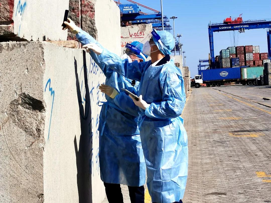 泉州海关石狮办关员在对进口石材进行放射性项目检测(黄忠族 摄)