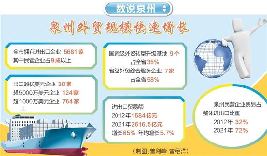 跨境电商展现强劲活力的同时,也成为推动泉州外贸转型升级、提质增效的一把利器。党的十八大以来,泉州创新培育了市场采购贸易、跨境电商等全省最多、最活跃的外贸新业态,是全国唯一一个拥有两个市场采购贸易试点的地级市,其中石狮市场采购试点首创了“采购地申报、口岸验放”通关模式,并在全国首获预包装食品出口试点。