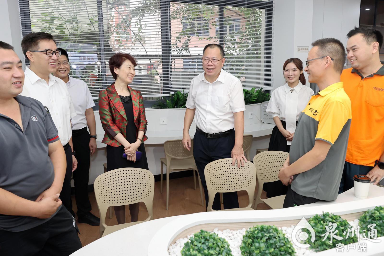 近年来,随着以平台经济为代表的新业态蓬勃兴起,泉州集聚了快递员、外卖员、网约车司机等新就业群体70多万人。为做好新就业群体“党建带工建”工作,今年7月,位于祥远路的市级“党建+”暖新驿站揭牌运行,免费提供交流培训、纠纷调解、24小时自助等关爱服务。张毅恭与正在驿站歇脚的快递员亲切交谈,了解他们的工作生活情况和体验感受,鼓励大家积极向党组织靠拢,在城市网格化治理中发挥“前哨”作用;要求部门和属地着眼增强党在新兴领域的号召力和凝聚力,坚持以实用为导向,完善驿站标准化服务功能,不断扩大服务对象覆盖面,把精细化治理穿透落实到基层“最后一米”。