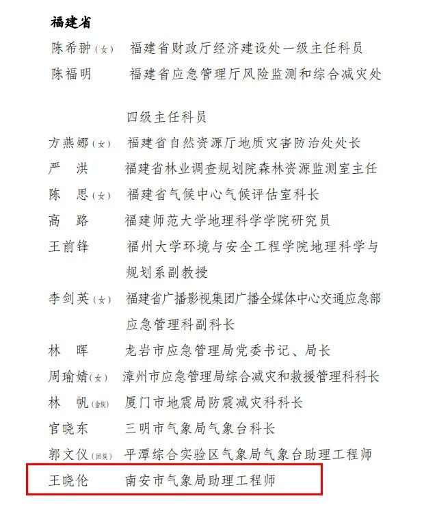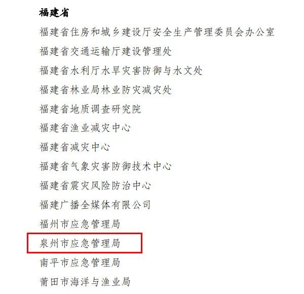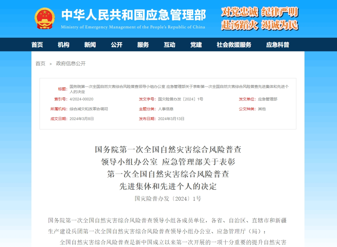 近日,国务院第一次全国自然灾害综合风险普查领导小组办公室、应急管理部公布了关于表彰第一次全国自然灾害综合风险普查先进集体和先进个人的决定,授予481个单位“第一次全国自然灾害综合风险普查先进集体”称号,授予488名同志“第一次全国自然灾害综合风险普查先进个人”称号。其中,泉州市1个集体、1名个人获得表彰。