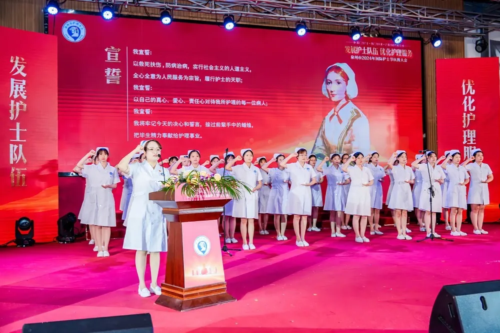 5月9日,泉州市“5·12”国际护士节庆祝大会在泉州医学高等专科学校召开,会议传达了市领导对广大护理工作者的诚挚问候和衷心感谢,并向辛勤工作在各级各类医疗卫生机构临床一线、为维护人民群众健康安全作出无私奉献的广大护理工作者致以节日祝贺!会议提出全市护理工作者要继续以实际行动践行入医初心使命,让“暖心护理”品牌照亮每一位患者,为建设品质泉州作出护理工作者的特殊贡献;继续坚持以人民为中心的发展理念,持续落实改善护理服务行动计划,优化护理服务,为患者提供整体性连续性护理服务,落实进一步改善护理服务行动计划工作方案,发展护士队伍,优化护理服务。