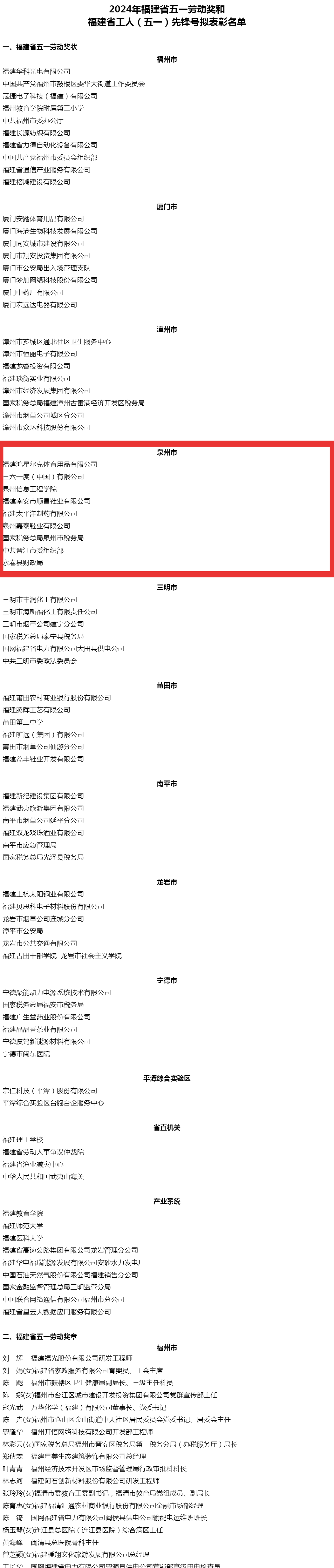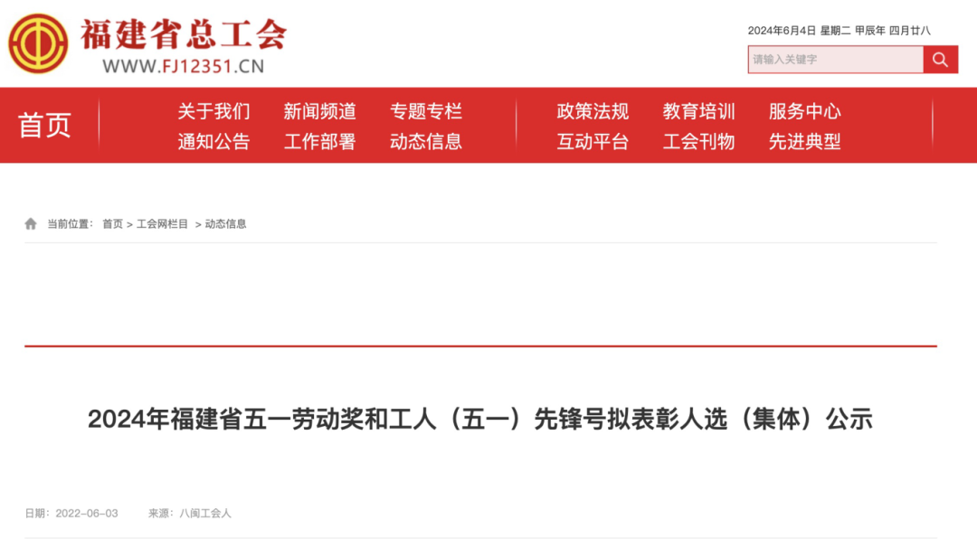 2024年福建省五一劳动奖