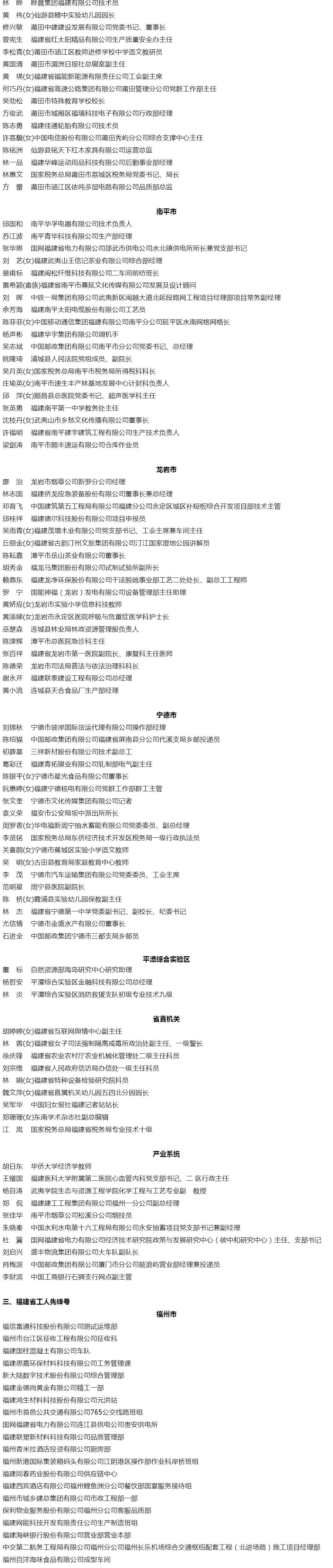 为进一步听取群众意见,广泛接受社会监督,现将2024年福建省五一劳动奖综合表彰拟表彰对象在福建工会网(www.fj12351.cn)通知公告栏予以公示。对公示对象如有不同意见者,请在公示期内以来电、来访、来信等方式向福建省总工会反映,提倡实名反映问题,来信时间以到达日邮戳为准。