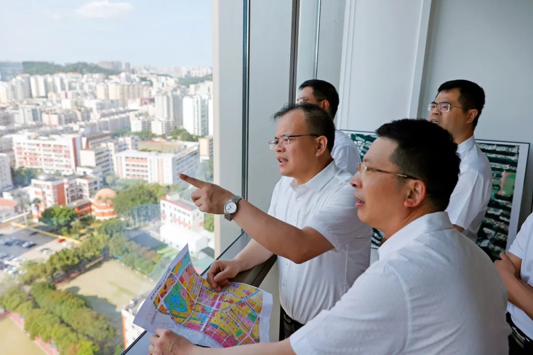 在丰泽,蔡战胜一行登上楼宇高处,俯瞰中心市区,了解各片区的规划设计、功能布局、基础设施配套、交通线路走向等,与基层干部探讨系统性推进城市片区开发建设、招商引资的思路和举措。