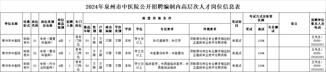 泉州市中医院公开招聘编制内高层次人才3人