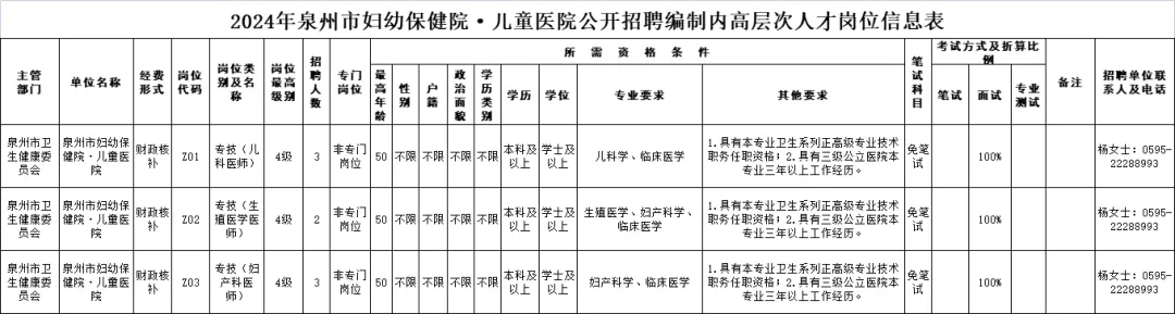 泉州市妇幼保健院·儿童医院公开招聘编制内高层次人才8人