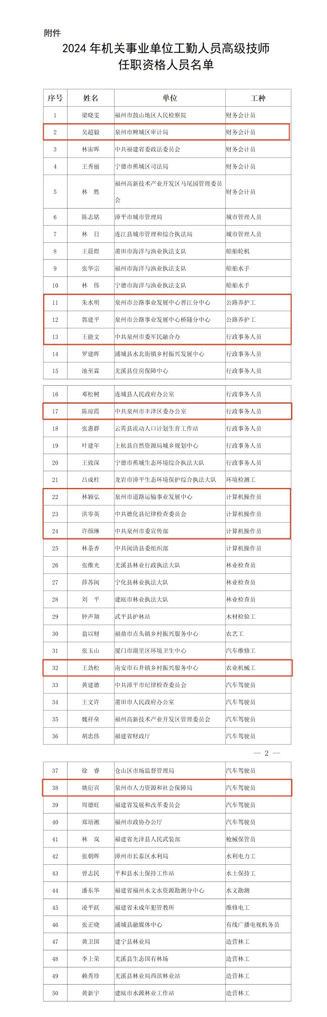 2024年机关事业单位工勤人员高级技师任职资格人员名单