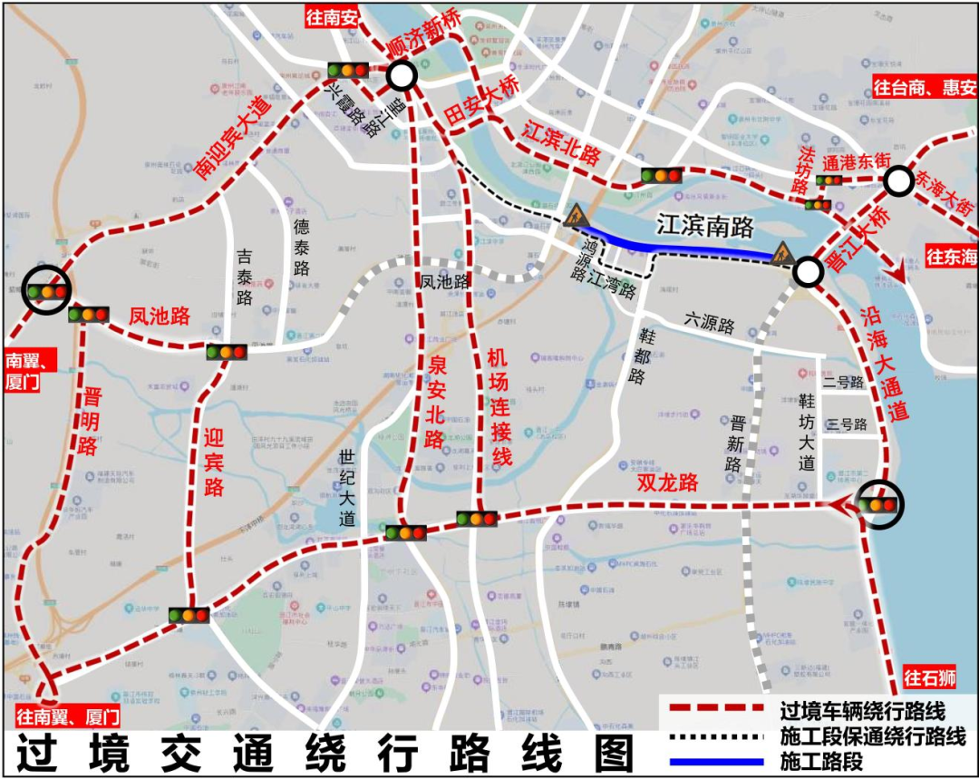 江滨南路(鞋都路口-晋江大桥路段)分段半幅封闭施工