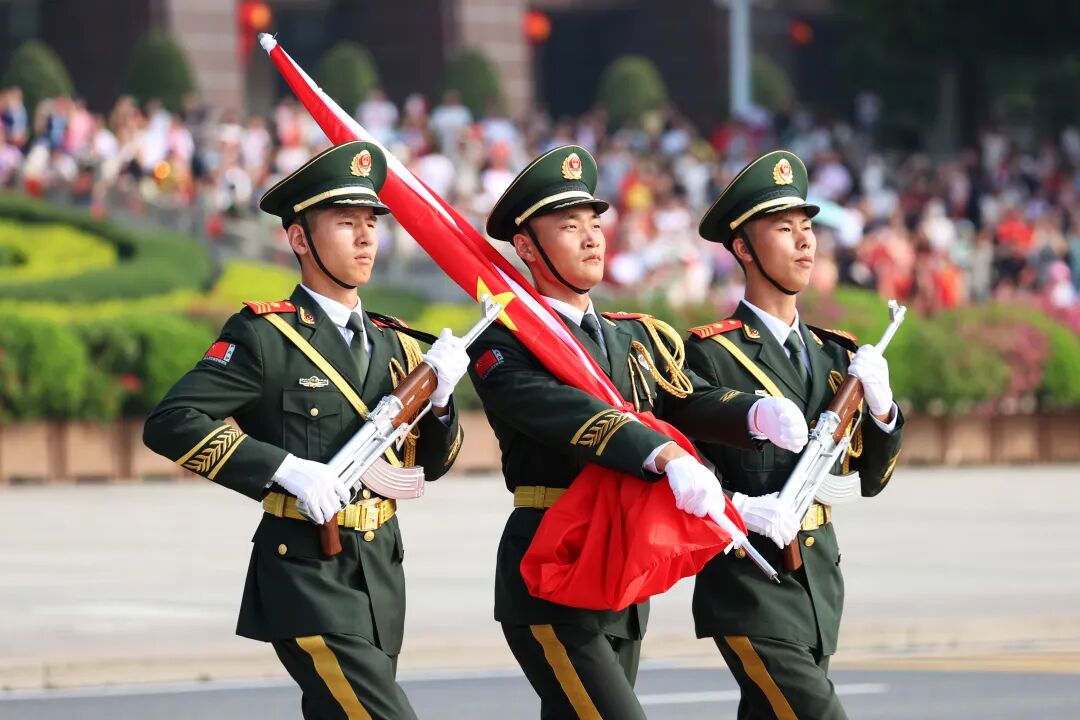上午8时30分,升国旗仪式正式开始。英姿飒爽的国旗护卫队迈着铿锵有力的步伐,护送国旗行进至升旗台。“向国旗——敬礼”,在指挥员嘹亮的口令中,擎旗手振臂一挥,有力地将国旗向空中展开。伴随着雄壮的《义勇军进行曲》,鲜艳的五星红旗徐徐升起,在湛蓝天空下猎猎飘扬。全体人员面向国旗庄严肃立,齐声高唱国歌,表达对伟大祖国的无限热爱和崇高敬意。