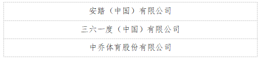安踏、三六一度、中乔体育拟获选“十大类纺织创新产品‘持续创新单位’”。