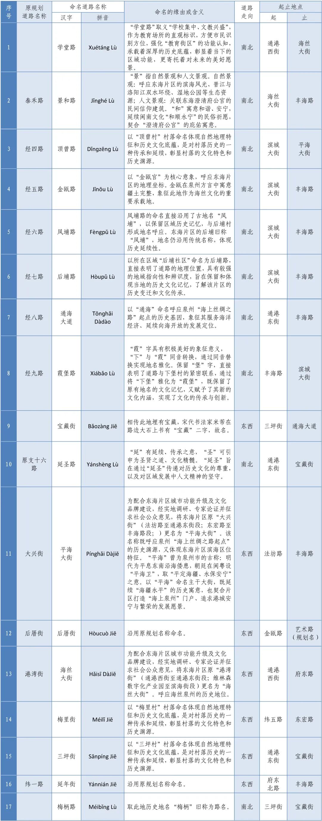 此次东海片区17条道路主要在东海中央活力区,其中原规划的大兴街命名为“平海大街”、港湾街命名为“海丝大街”。