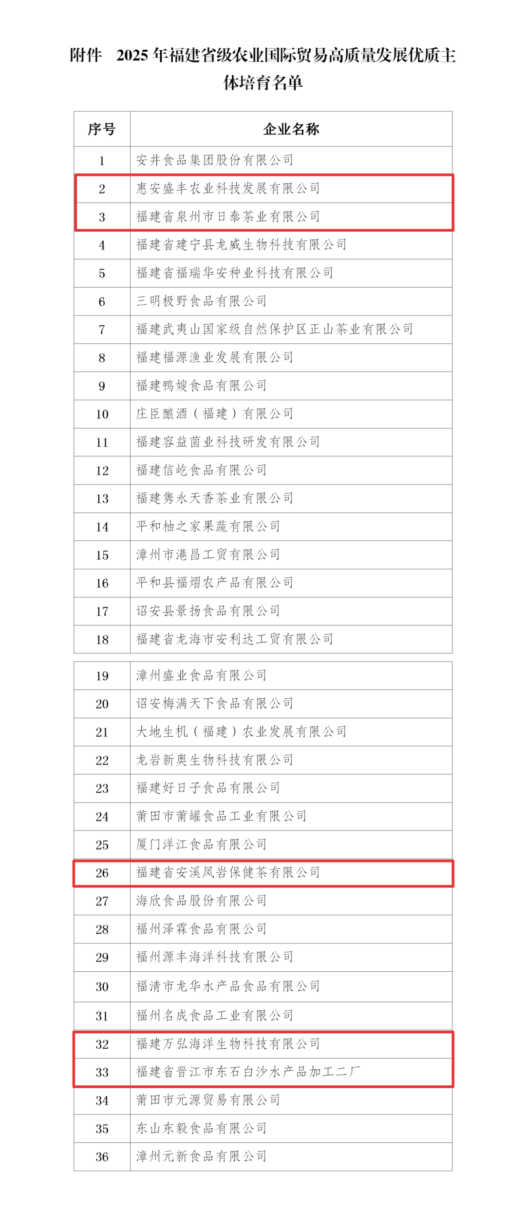 近年来,我市逐步加大对农业出口企业培育力度,并安排资金对获评省级国际贸易高质量发展优质主体(农业类)的企业进行扶持,累计已下达市级财政补助资金75万元,培育省级国际贸易高质量发展优质主体(农业类)共计15家,2025年预计新增5家。