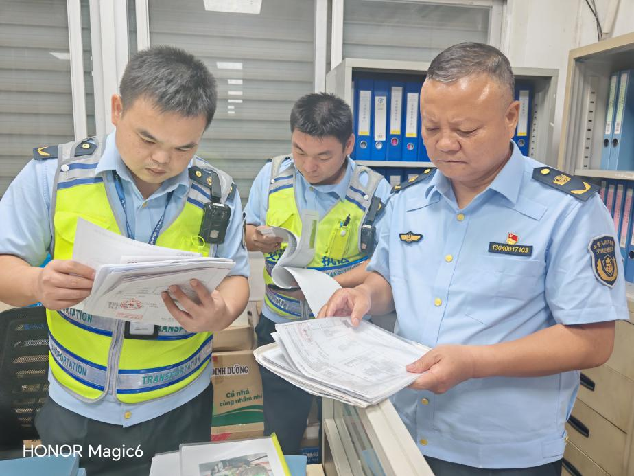 交通执法人员在物流企业就车辆二级维护情况进行调查