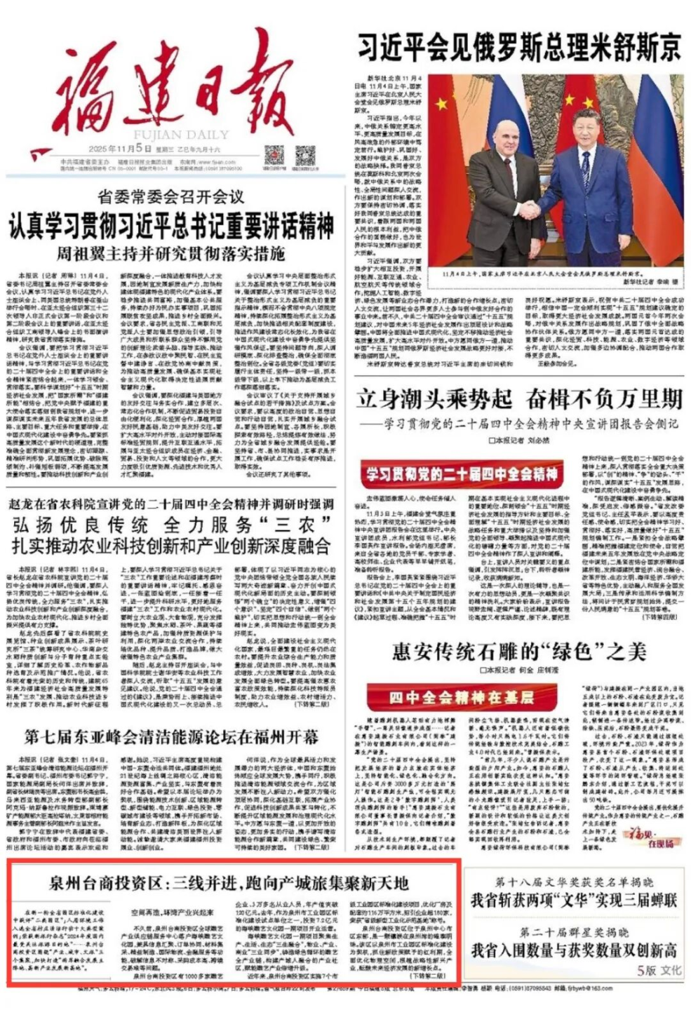 泉州台商投资区:三线并进,跑向产城旅集聚新天地(2025年11月5日《福建日报》头版)