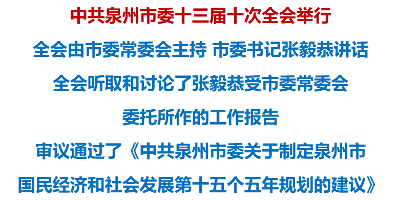 中国共产党泉州市第十三届委员会第十次全体会议,于2025年11月28日在泉州举行。