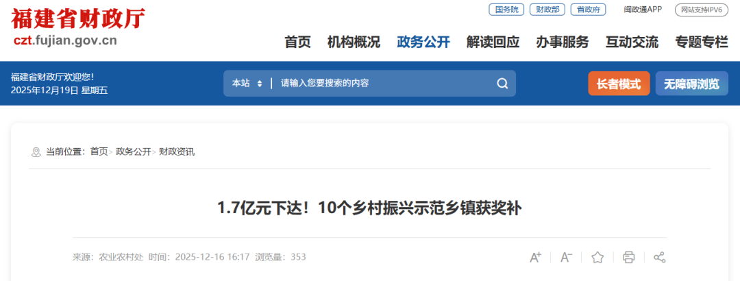 下达乡村振兴示范创建资金1.7亿元