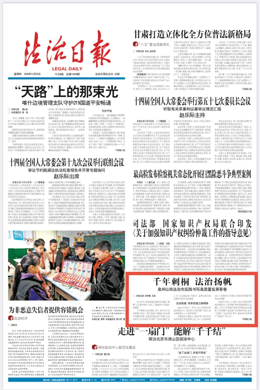 千年刺桐,法治扬帆。如今,泉州市立足世界遗产城市、“晋江经验”发源地与知名侨乡等叠加优势,全面深化依法治市实践,让法治成为文化传承的“护身符”、经济发展的“定心丸”、社会稳定的“压舱石”,滋养这座古城在新时代依旧生机勃勃。