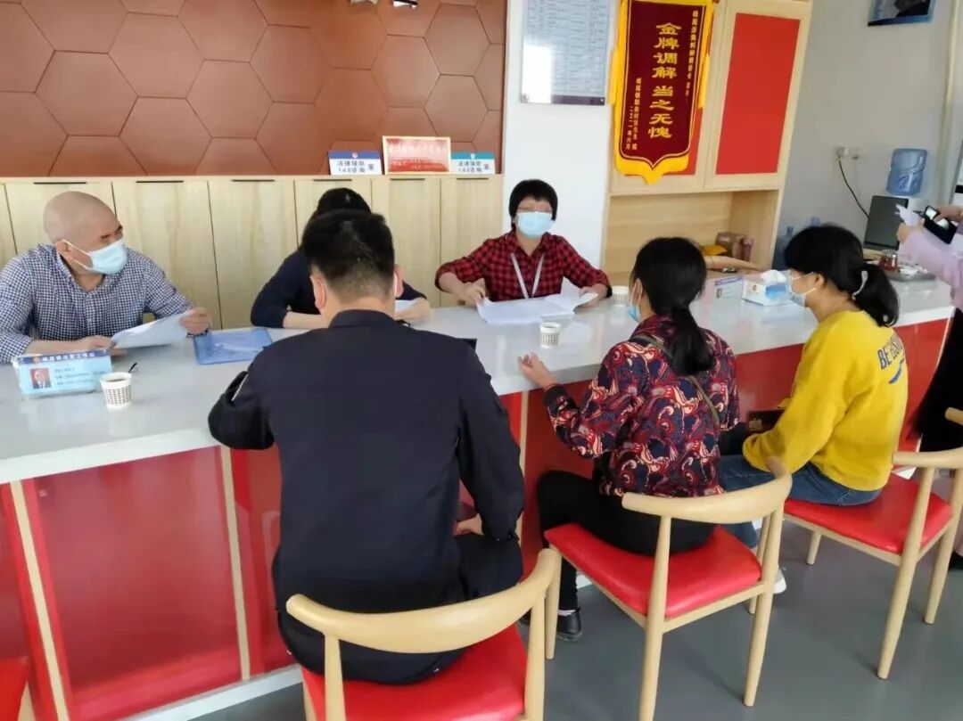 峰尾司法所专职调解员联合法官工作站驻点法官开展调解工作