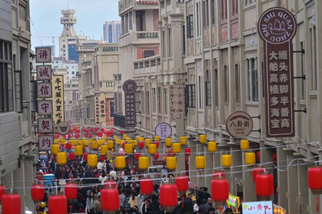 石狮八卦街历史文化街区位于石狮市中心,是这座侨乡城市历史文化的核心承载地。“一条八卦街,半部石狮史”,从隋唐起,八卦街由驿道聚集成市,由市聚居成村落,发展到近现代,成为坐拥“九街十一巷”的繁华商贸中心。街区主体建筑多建于清末至民国时期,以连续骑楼式商住两用建筑为主,外观兼具闽南红砖特色与南洋装饰元素,形成“街巷纵横、商铺林立”的传统市井格局,构成具有浓郁侨乡风貌的建筑群落,是闽南侨乡文化与海洋商贸文明交融的重要见证,承载着石狮“以商兴市、以街聚侨”的历史记忆。近年来,石狮市对八卦街实施分片修缮与综合提升,目前街区已吸引超过130家商户与文化机构入驻,包含石狮古早味美食、侨乡服饰记忆馆、南洋风情咖啡馆、非遗伴手礼馆、石狮千年文化基地等多元业态,逐步形成集历史体验、市井烟火、文化消费、社区生活与休闲游憩功能一体的沉浸式活态文旅街区。