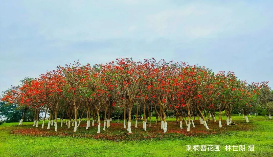 一是科学养护,三大核心调控技术,精准拿捏开花密码。进行生态环境调控,每年4—5月精准修剪并采用“轻度干旱—适度补水”等模式改善生长条件,为花芽分化筑牢基础;加强刺桐树体营养调控,5月上旬对健壮树环割,10月进行激素喷洒,达到树体激素平衡、从营养生长向花芽生长转化;持续补充土壤营养,提升土壤有机质,为刺桐开花提供持续且充足的养分支撑。