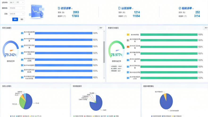 在基层减负方面,一场覆盖全市的基层报表数据摸底工作全面铺开,通过从源头规范数据采集、整合、共享和应用流程,一度困扰基层的“报表繁、重复报”问题迎来破解之道。截至目前,已累计梳理各类报表2000余张、数据项近18000个,精简基层报表超250张,压减重复数据项近3200个,报表减压率、数据项减压率均达80%左右,让基层干部从“文山会海”中解脱出来,得以腾出更多精力抓落实、促发展,真正实现了“善事”先“利其器”。