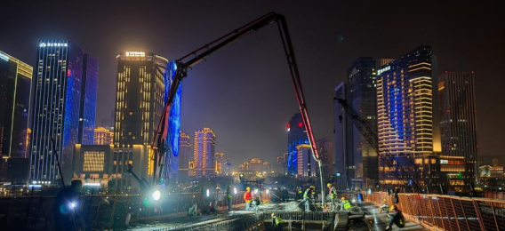 施工过程中,项目团队严格执行混凝土配合比设计、拌合、运输、浇筑、振捣及养护全流程管控,紧盯混凝土坍落度、浇筑速度、振捣质量等关键指标,同步做好海上工况实时监测,克服夜间施工、海域环境多变等不利因素,全程闭环管控施工质量与安全生产。经过连夜7小时的鏖战,此次箱梁浇筑圆满完成!