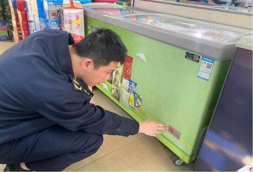 二是“红黄绿”评级分类别。结合日常检查和智能监测数据,对企业、商超和餐饮店的冷柜进行动态评级,分为“绿标”“黄标”“红标”对应不同的巡查频次。2026年以来,开展冷藏冷冻设施“体检”行动2次,针对温度相关问题指导规范25条,责令整改不达标设备5台,靶向抽检11批次,合格率100%。