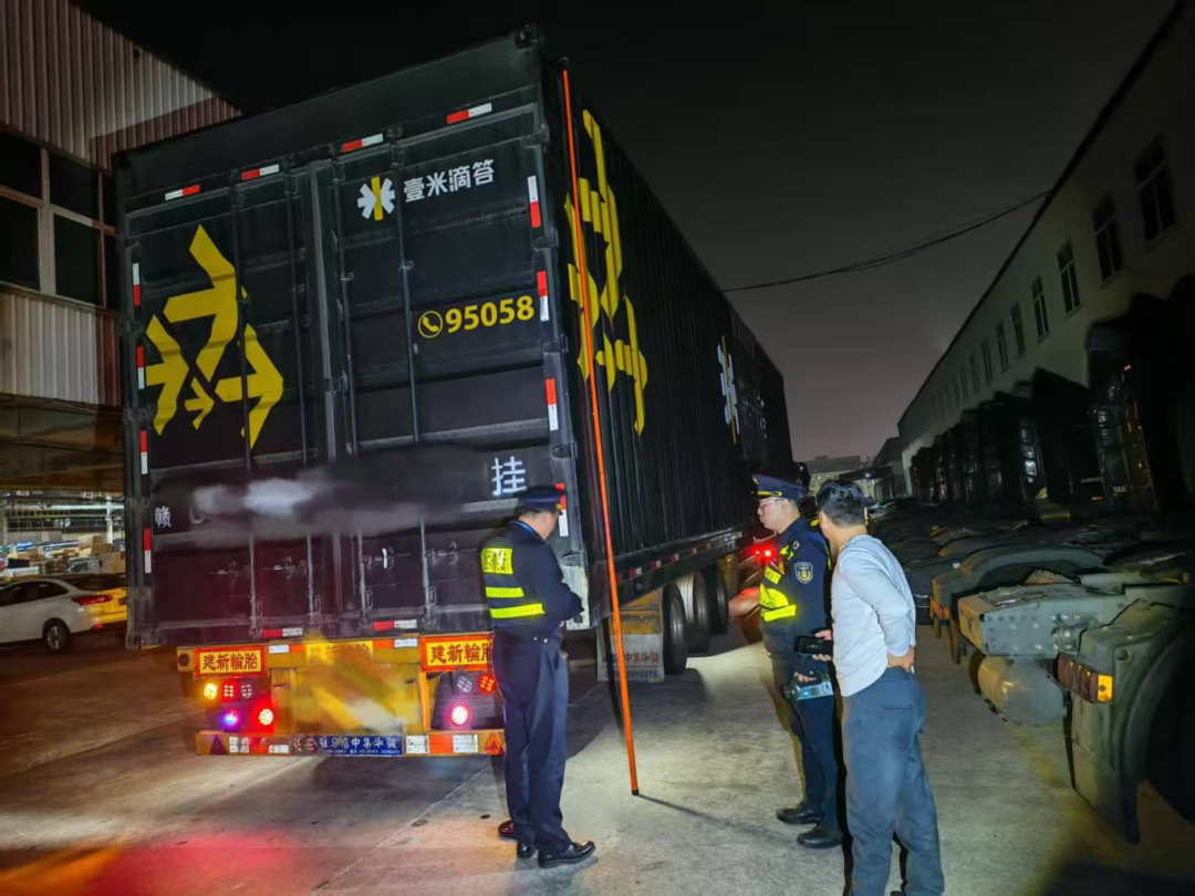 交通执法人员开展货运车辆非法改装夜间执法行动