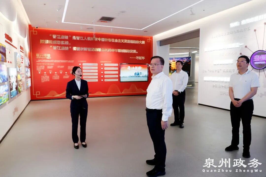 泉州市城市规划展示馆立足“历史与现在、文化与经济、中国与世界”的宽广视野,融合声光电影、沙盘模型,营造沉浸式文化氛围,生动演绎泉州从千年古城迈向现代化城市的壮丽图景。蔡战胜认真观看泉州建制沿革、古城保护传承等内容,系统感受泉州城市演进的历史脉络,与相关部门负责人共同探讨城市总体规划布局和展馆展陈设计的优化提升。他指出,要深入诠释“人民城市人民建、人民城市为人民”重要理念,充分挖掘泉州的人文底蕴、城市精神,更好运用数字化手段,动态更新展陈内容,丰富市民、游客的参观体验,不断提升场馆运营水平和服务品质,将城市规划展示馆打造成为了解泉州历史文脉、空间格局、产业发展、城市形象、未来愿景的重要窗口,擦亮21世纪“海丝名城”名片。