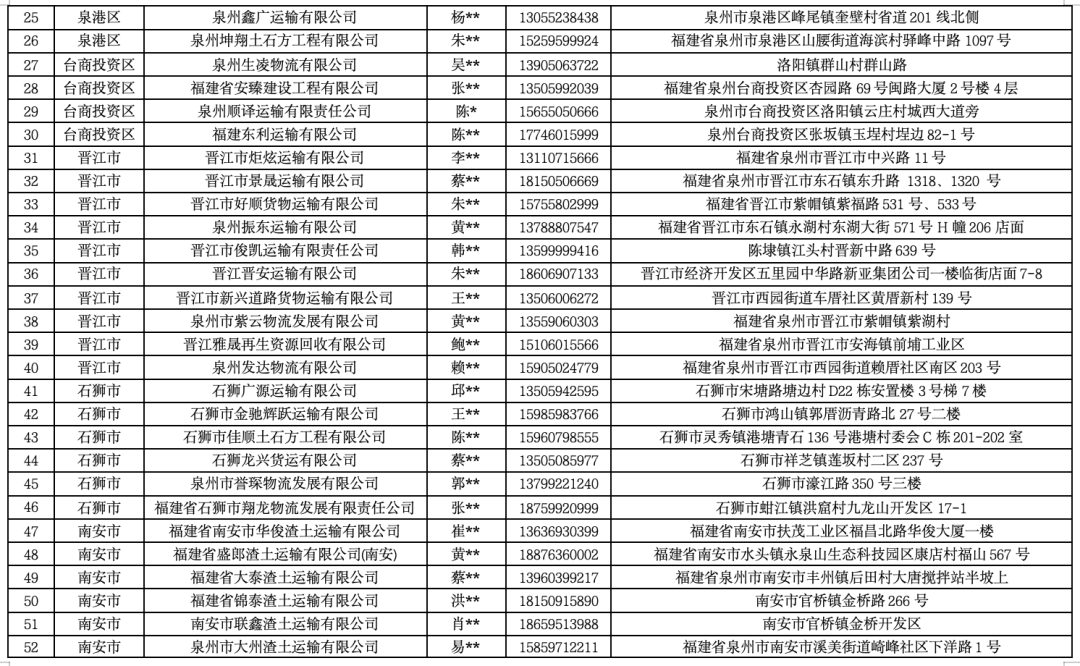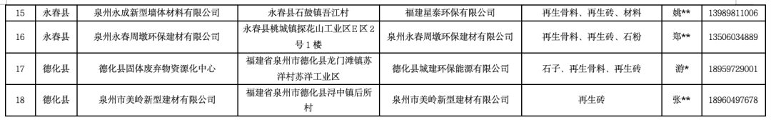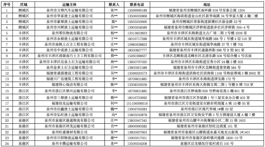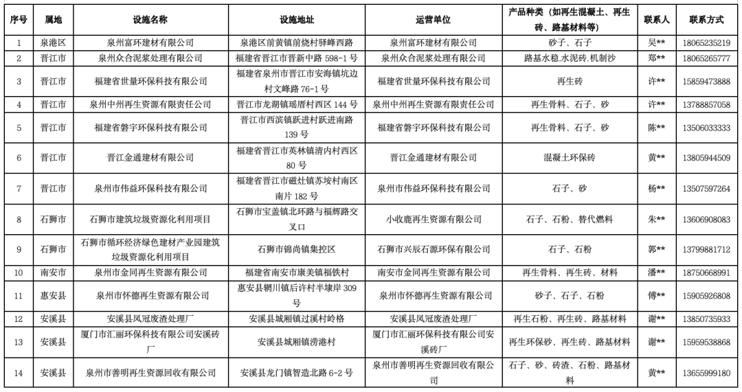 为规范我市建筑垃圾清运管理秩序,加强建筑垃圾产生、收集、运输、处置全过程管控,依据《中华人民共和国固体废物污染环境防治法》《城市建筑垃圾管理规定》《泉州市建筑垃圾管理规定》要求,现将我市建筑垃圾清运企业及资源化利用企业名单予以公布。
