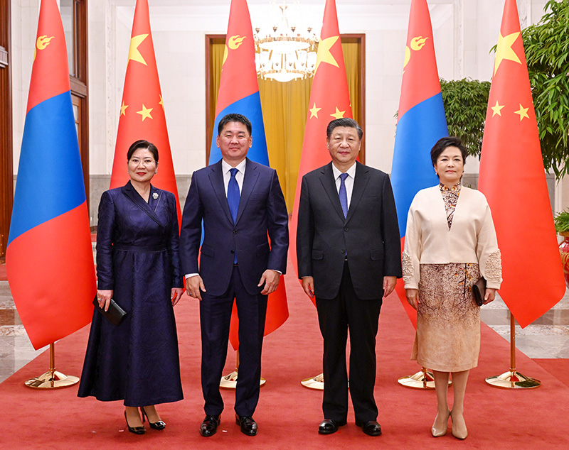 双方发表《中华人民共和国和蒙古国关于新时代推进全面战略伙伴关系的联合声明》,一致同意携手推进现代化建设,朝着共建和平共处、守望相助、合作共赢的两国命运共同体方向作出努力。