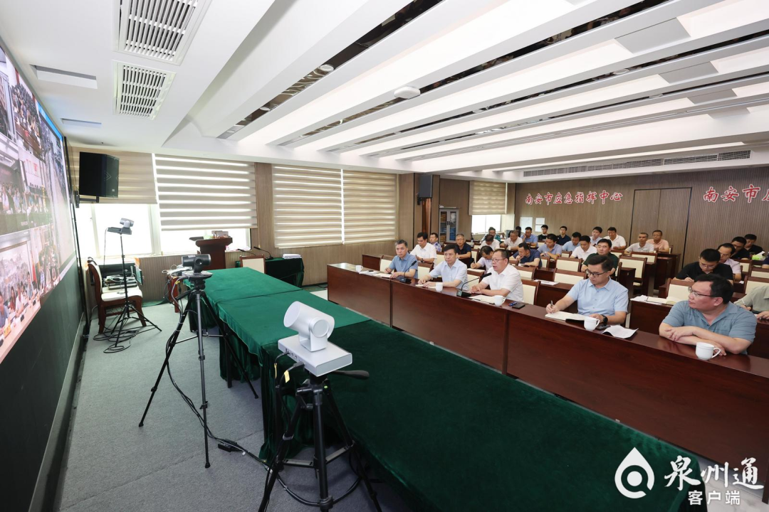 张毅恭在南安市应急指挥中心与基层乡镇、街道视频连线。