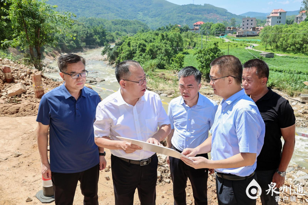 张毅恭前往南安市官桥镇九溪村,察看清淤除障及灾后重建工作。