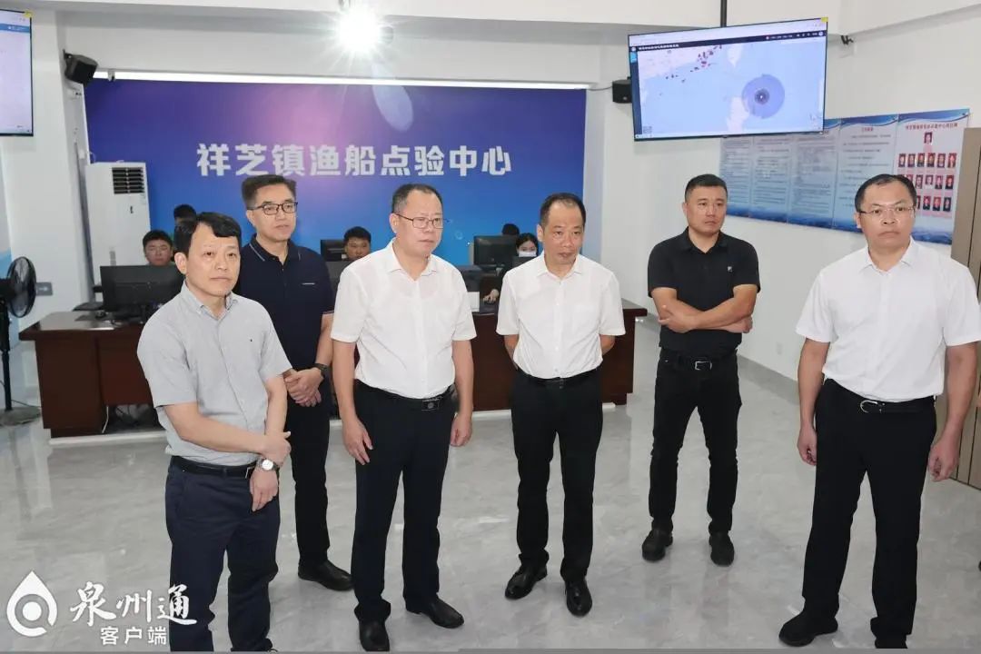 张毅恭到祥芝镇渔船点验中心调研,询问渔船就近回港躲避台风情况。