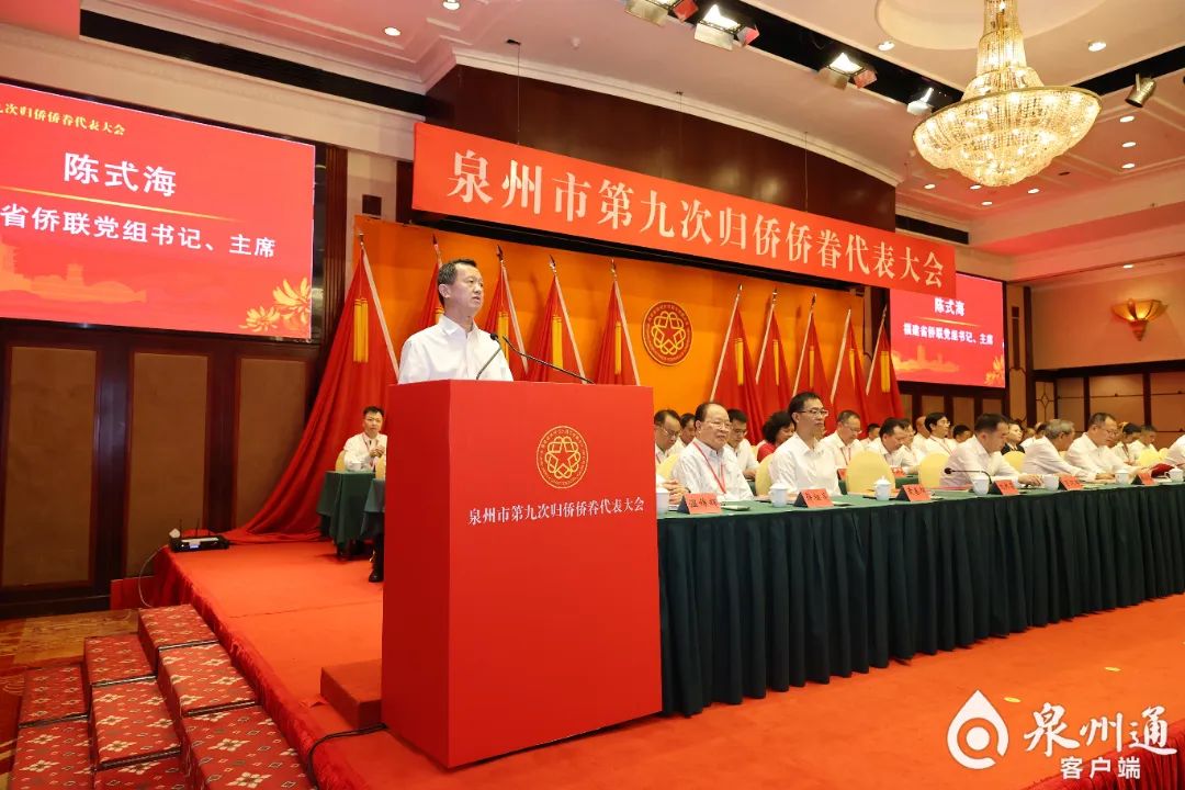陈式海代表省侨联向大会召开表示祝贺,希望泉州市各级侨联深刻领会党的二十大精神实质和丰富内涵,坚持以凝聚侨心侨力同圆共享中国梦为主题,以“根”“魂”“梦”为主线,更好地为大局服务、为侨服务。强化政治引领,引导广大侨胞将爱国之情根植于心、践之于行。凝聚侨智侨力,积极探索两岸侨务融合发展新路,“以侨为桥”讲好中国故事、福建故事、泉州故事。牢记初心使命,畅通侨界建言献策和诉求表达渠道,依法维护侨胞合法权益。立足群团特点,进一步增强侨联组织活力,努力打造让党放心、让侨界群众满意的侨联干部队伍。市委常委、宣传部部长、统战部部长刘林霜主持开幕会,市领导李文生、黄春辉、庄灿霞等出席。团市委主要负责同志代表人民团体致辞,海外代表在开幕会上致辞。市侨联主要负责同志代表市侨联第八届委员会作工作报告。会上颁发了“最美基层侨联工作者”“寻根平台建设乐捐人士”奖牌,并举行“侨爱联心”公益基金启动暨捐赠仪式。会议选举温锦辉为新一届市侨联主席。来自全市各条战线、各行各业的归侨侨眷代表,以及30多个国家和地区的特邀嘉宾等400多人参会。