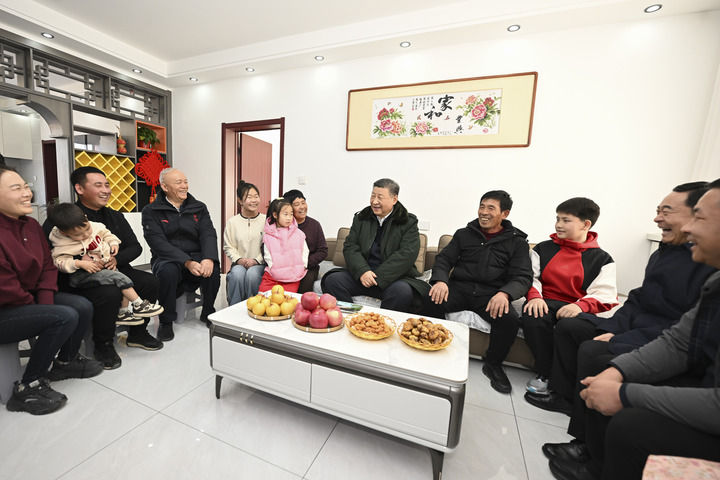 1月22日至24日,中共中央总书记、国家主席、中央军委主席习近平冒着严寒来到辽宁,看望慰问基层干部群众。这是22日下午,习近平在葫芦岛市绥中县明水满族乡祝家沟村考察时,走进村民朱西存家看望。新华社记者 王晔 摄