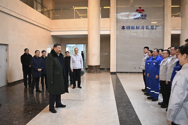 23日下午,习近平来到本溪,考察了鞍钢集团所属的本钢板材冷轧总厂第三冷轧厂。他在企业集控中心察看集控智能系统运行,在车间了解冷轧工序、技术创新、产品性能,并亲切看望劳动模范、青年技术骨干、一线职工代表。习近平指出,制造业要坚持高端化、智能化、绿色化方向,不断提高产品科技含量和附加值,像鞍钢这样的国有大企业要为中国式现代化多作贡献。