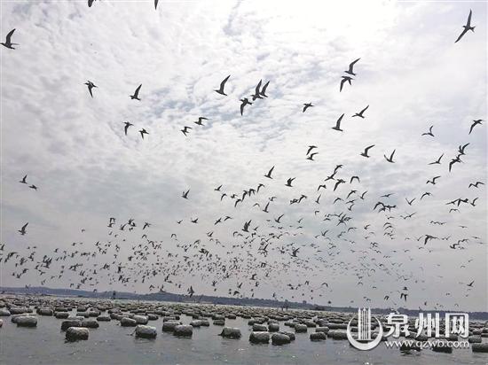围头村鲍鱼养殖区成为天然的鸟类保护区