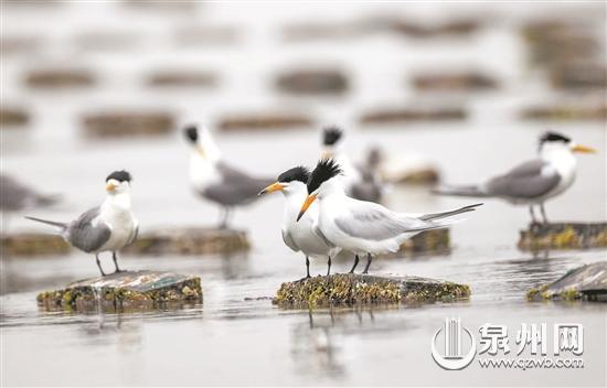 中华凤头燕鸥,是中国最珍稀的鸟类,被世界自然保护联盟列入极度濒危物种,现今全球总数不到100只,是研究者眼中难得一见的“神话之鸟”。前两年春季,中华凤头燕鸥群体在晋江金井围头湾都曾出现过,最近观鸟爱好者在围头村鲍鱼养殖区又发现了它们的踪迹。