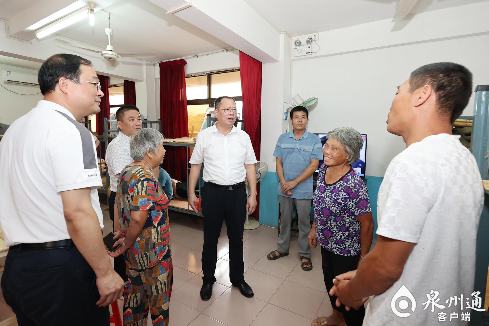 在南安市仑苍镇大泳村、安溪县城厢镇墩坂村地灾隐患点及转移人员安置点,张毅恭要求压紧压实镇村责任,在台风登陆前抢抓时间,对临江临溪临崖等再过细摸排,确保人员转移到位,同时加强巡查监测和值班值守,做好宣传引导和服务管理,防止群众在风险解除前提前返回。