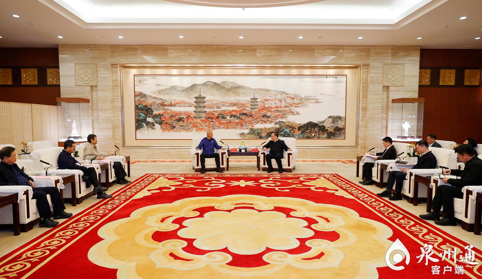 12月7日,市长蔡战胜与来泉考察的澳门福建同乡总会会长、澳门金龙集团董事长陈明金一行座谈。蔡战胜表示,泉州把城市建设作为高质量发展主阵地,实施“抓城建提品质”等系列专项行动,城建成效初显,民生福祉不断提高。希望大家要多融入家乡高质量发展浪潮,发挥资源优势,积极牵线搭桥,踊跃投资泉州,共享发展机遇、共创美好未来。副市长陈小辉参加。