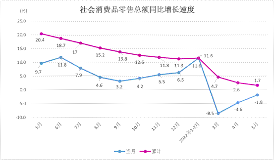 今年以来,我市统筹疫情防控与经济社会发展,最大程度保障市场供给与消费稳定,虽然3、4月疫情反复对消费市场产生一定冲击,但总体看仍保持发展态势。1—5月,全市社会消费品零售总额同比增长1.7%。
