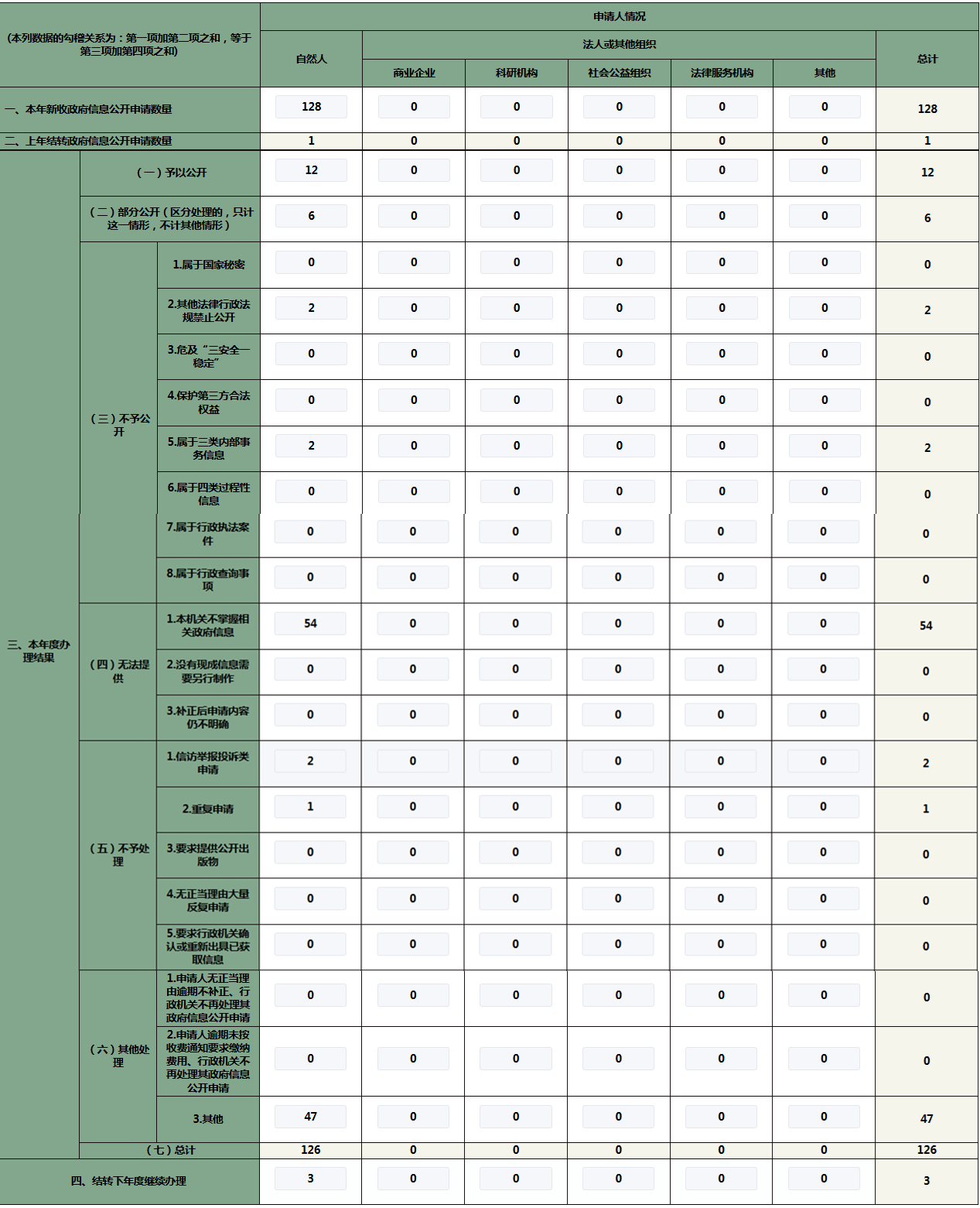 三、收到和处理政府信息公开申请情况