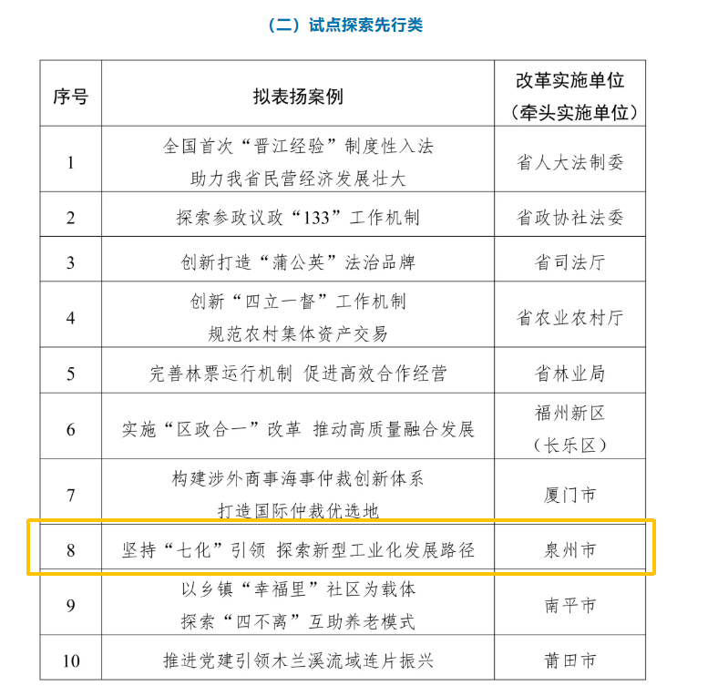 近日,2025年福建省改革优秀案例评选活动拟表扬案例名单公示,泉州市工业园区标准化建设经验做法《坚持“七化”引领,探索新型工业化发展路径》成功入选2025年福建省改革优秀案例评选活动表扬名单,成为泉州市级唯一入选案例。