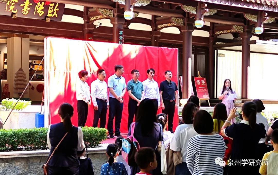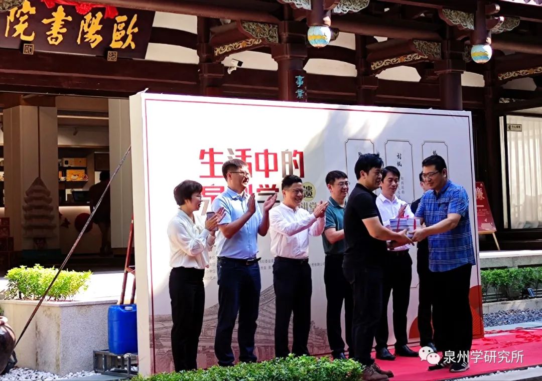 揭幕仪式结束后,在现场各位领导和嘉宾的共同见证下,泉州学研究所副所长王磊向欧阳书院负责人郭俊民赠送泉州学丛书,希望研究所的丛书能充实这个千年书院,书香墨韵。