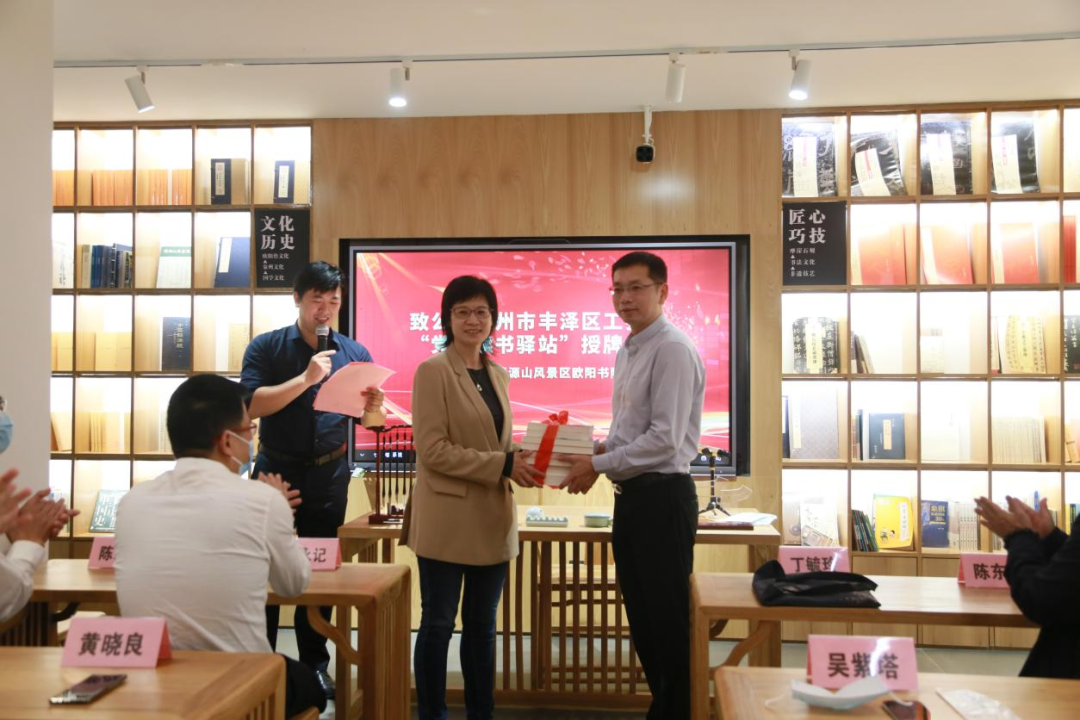 活动伊始,举行了致公党丰泽区工委会“党员读书驿站”授牌仪式。福建清源山旅游投资有限公司总经理吴紫塔从丁毓玲手中接过“党员读书驿站”牌匾,标志着致公党丰泽区工委会的党员们多了一处风景优美、底蕴深厚的开展读书活动好场所。随后,丁毓玲代表致公党泉州市委会向丰泽区工委会“党员读书驿站”赠书。