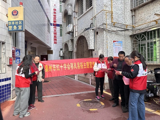 近日,泉州市红十字会机关党支部组织党员干部、工会会员及红十字青年文明志愿者,前往挂钩联系的丰泽区泉秀街道华丰社区,开展移风易俗宣传服务活动。